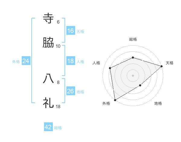 寺脇 八礼さんの総格は42画の3点!