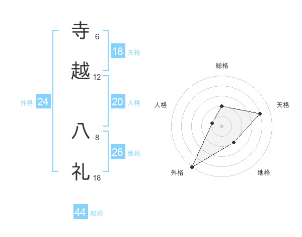 寺越 八礼さんを姓名の画数から五運を鑑定