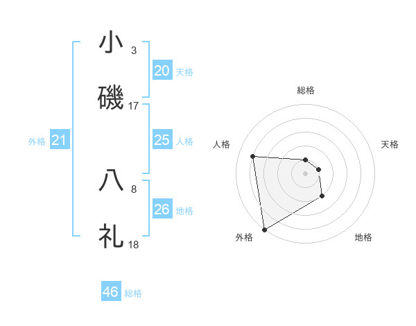 小磯 八礼さんを姓名の画数から五運を鑑定