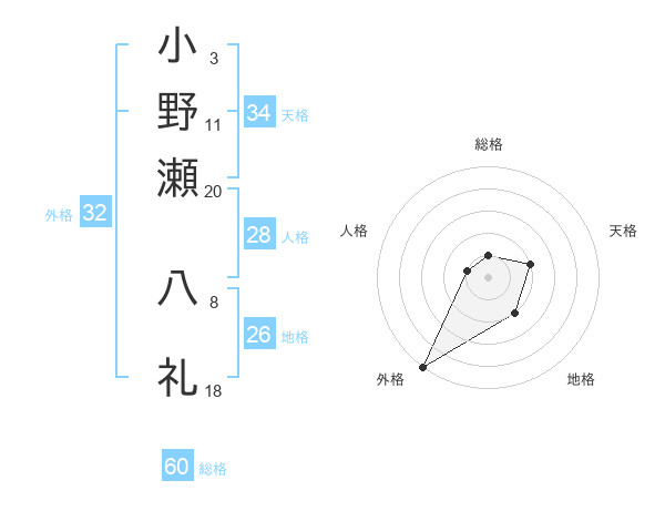 小野瀬 八礼さんの総格は60画の1点!