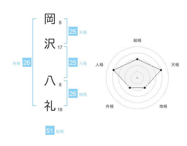 岡沢 八礼さんを姓名の画数から五運を鑑定