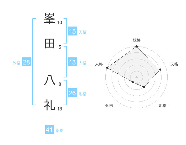 峯田 八礼さんを姓名の画数から五運を鑑定