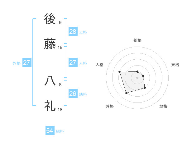 後藤 八礼さんを姓名の画数から五運を鑑定