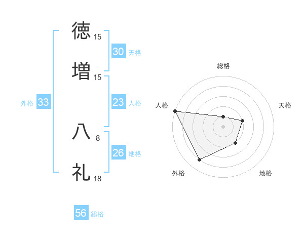 徳増 八礼さんを姓名の画数から五運を鑑定