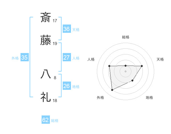 斎藤 八礼さんを姓名の画数から五運を鑑定