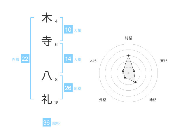 木寺 八礼さんの地格は26画の2点!