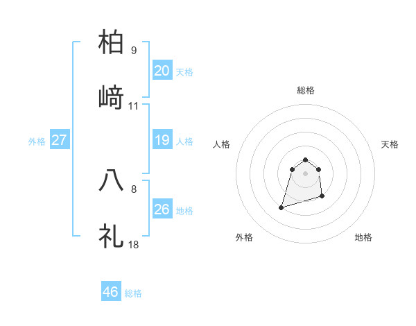 柏﨑 八礼さんを姓名の画数から五運を鑑定