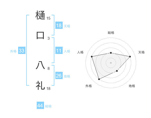 樋口 八礼さんの天格は18画の4点!