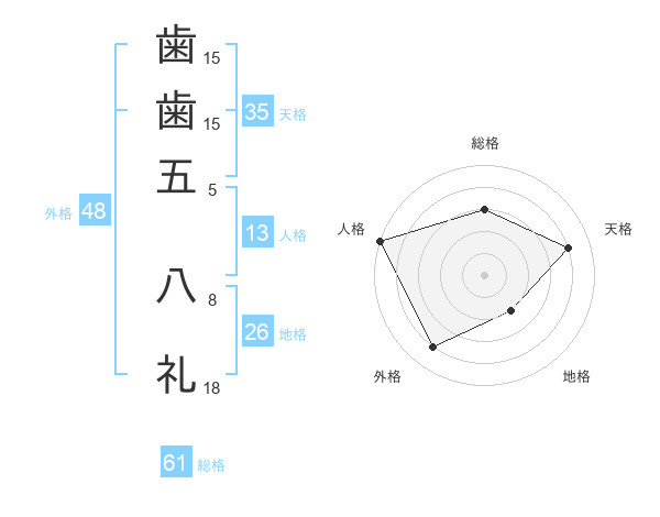 歯歯五 八礼さんの総格は61画の3点!
