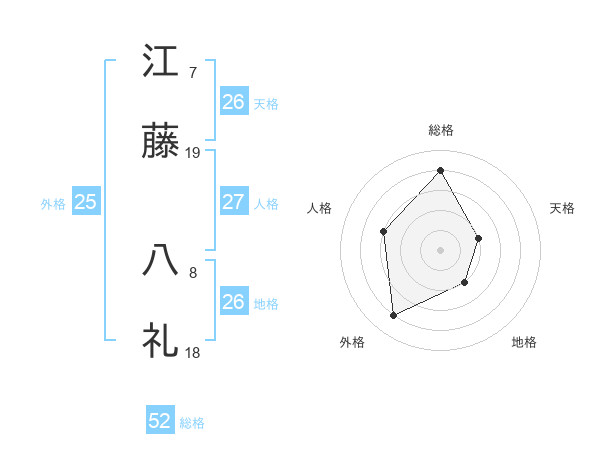江藤 八礼さんを姓名の画数から五運を鑑定