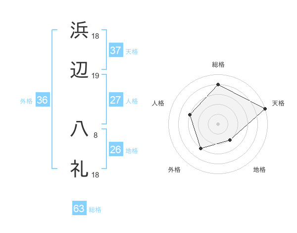 浜辺 八礼さんの総格は63画の4点!