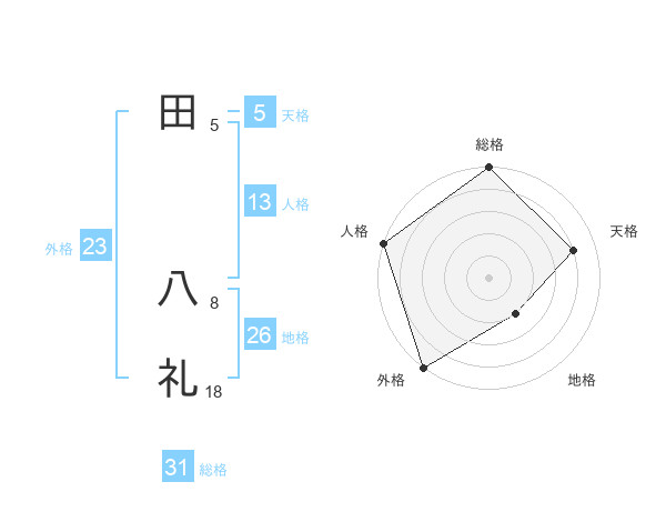 田 八礼さんの総格は31画の5点!