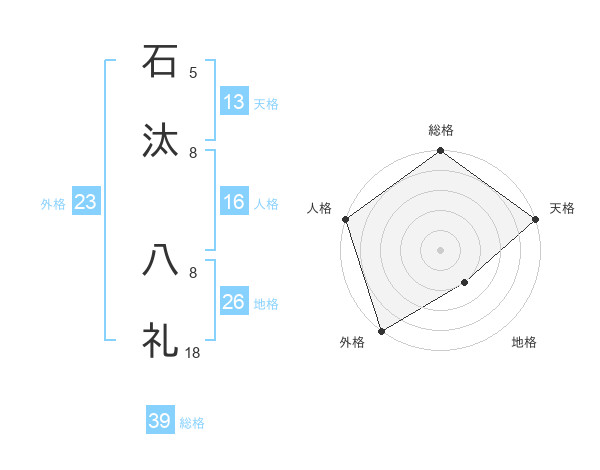 石汰 八礼さんを姓名の画数から五運を鑑定