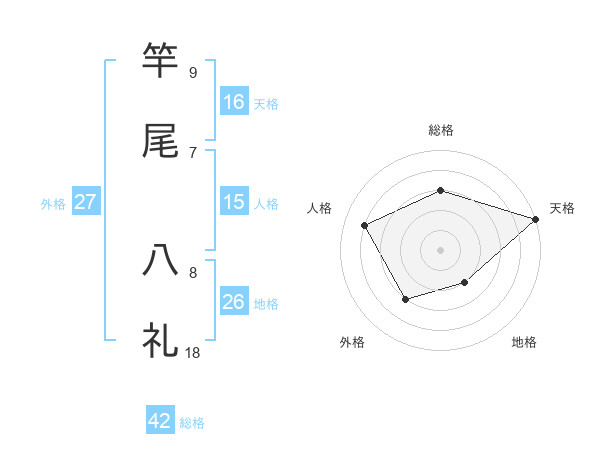 竿尾 八礼さんを姓名の画数から五運を鑑定