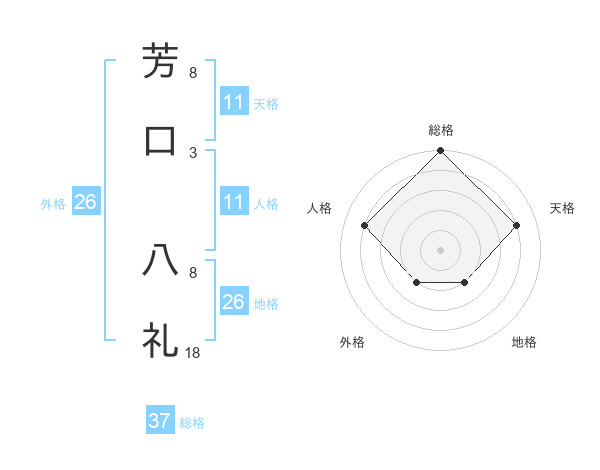 芳口 八礼さんを姓名の画数から五運を鑑定