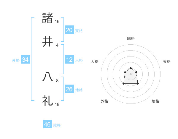 諸井 八礼さんを姓名の画数から五運を鑑定