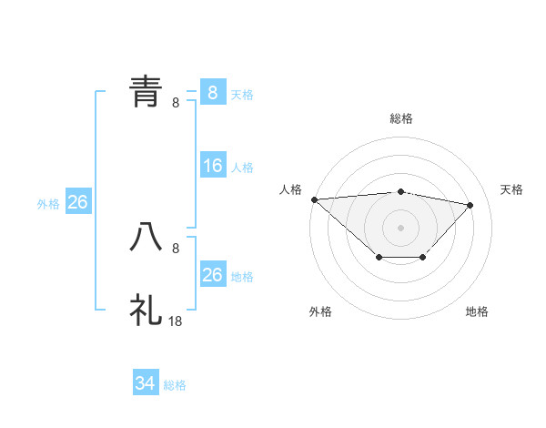 青 八礼さんの天格は8画の4点!
