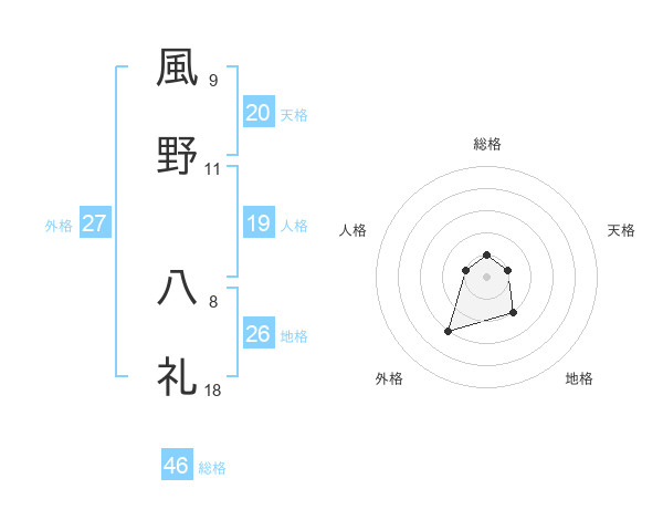 風野 八礼さんを姓名の画数から五運を鑑定