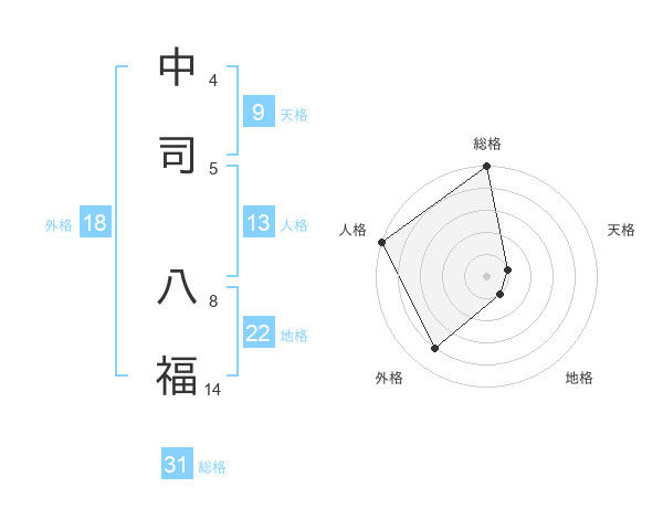 中司 八福さんの総格は31画の5点!