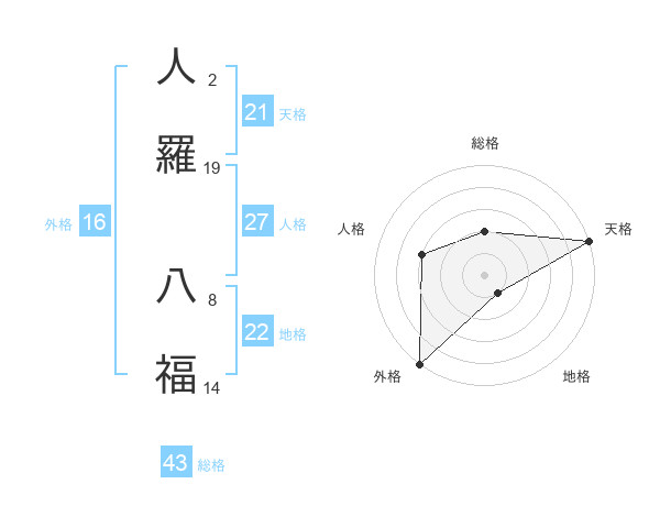 人羅 八福さんの天格は21画の5点!
