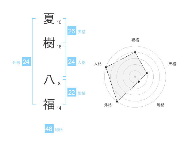 夏樹 八福さんの外格は24画の5点!