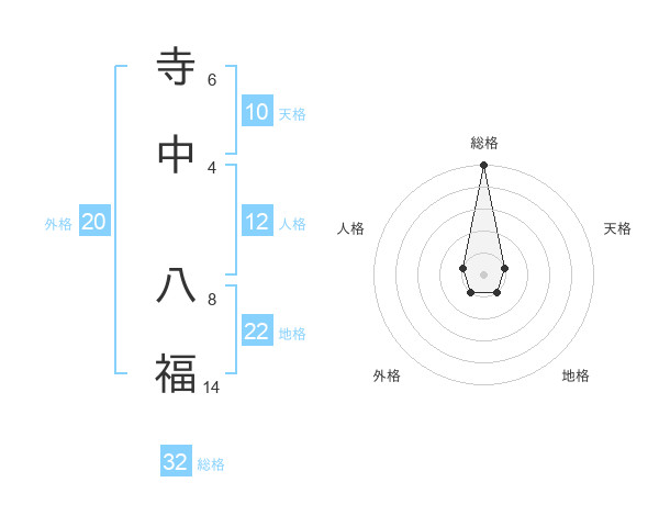 寺中 八福さんの総格は32画の5点!