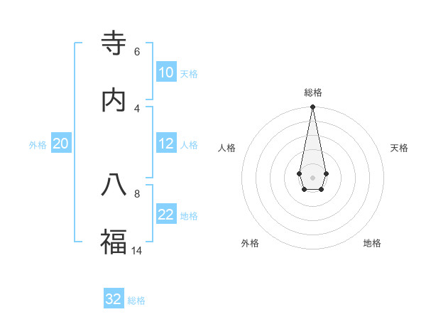 寺内 八福さんの総格は32画の5点!