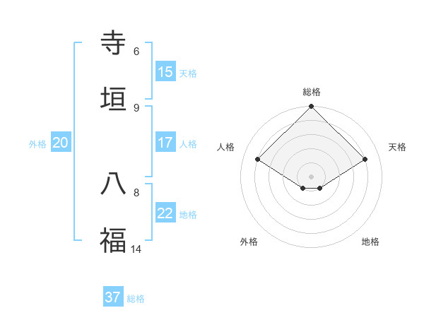 寺垣 八福さんの総格は37画の5点!