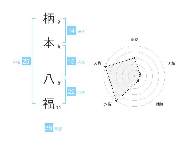 柄本 八福さんの外格は23画の5点!