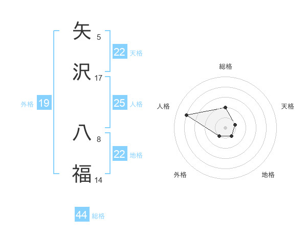 矢沢 八福さんの地格は22画の1点!