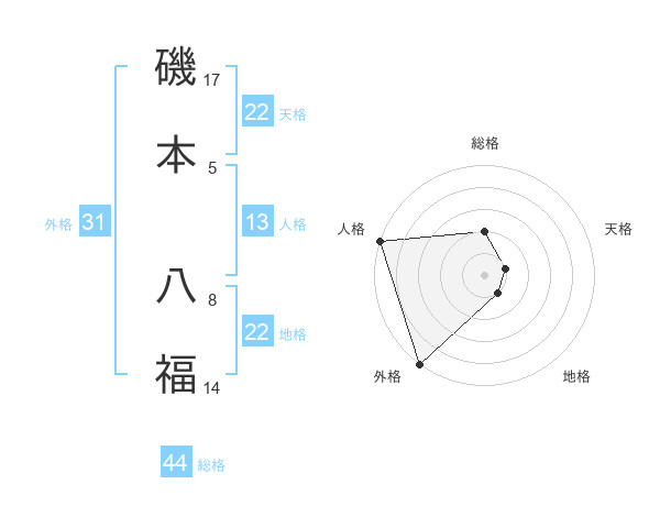 磯本 八福さんの地格は22画の1点!