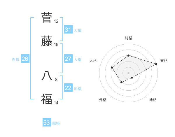 菅藤 八福さんを姓名の画数から五運を鑑定
