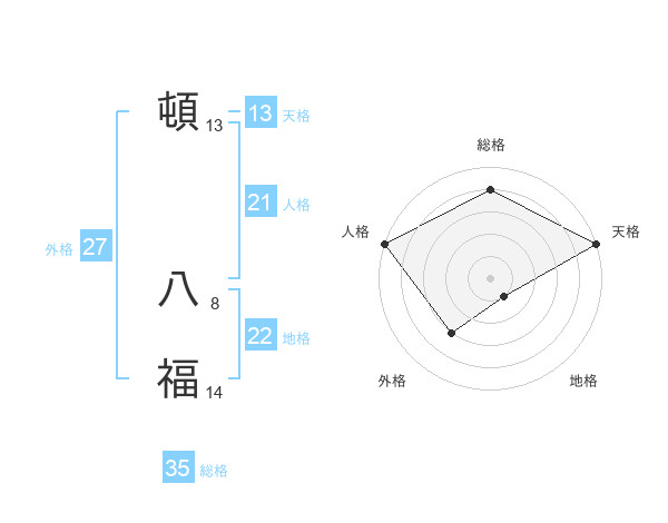 頓 八福さんの天格は13画の5点!