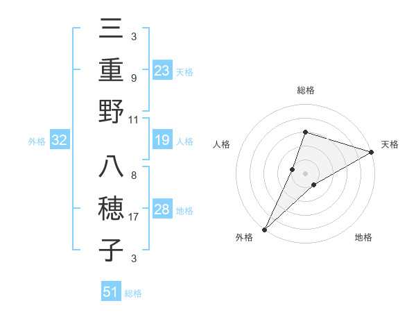 三重野 八穂子さんの総格は51画の3点!