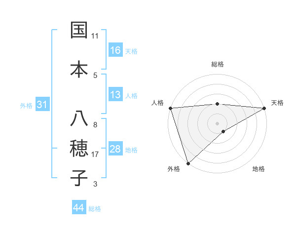 国本 八穂子さんを姓名の画数から五運を鑑定