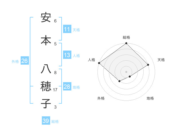 安本 八穂子さんの総格は39画の5点!