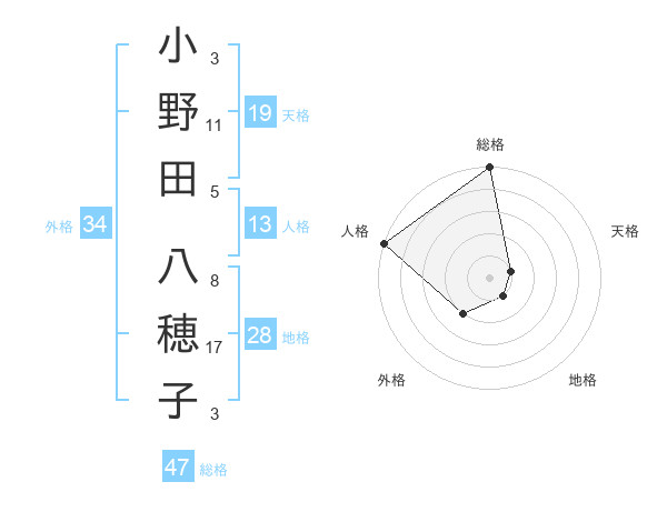小野田 八穂子さんを姓名の画数から五運を鑑定