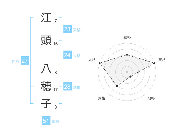 江頭 八穂子さんを姓名の画数から五運を鑑定