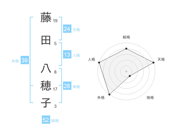 藤田 八穂子さんを姓名の画数から五運を鑑定
