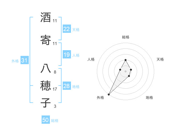 酒寄 八穂子さんを姓名の画数から五運を鑑定