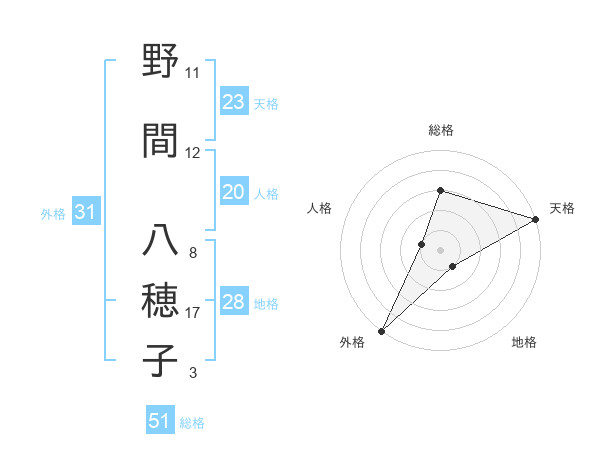 野間 八穂子さんの外格は31画の5点!