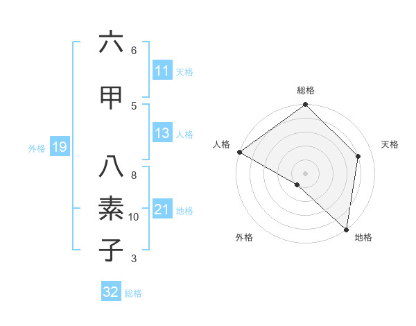 六甲 八素子さんを姓名の画数から五運を鑑定