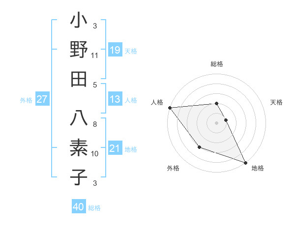 小野田 八素子さんを姓名の画数から五運を鑑定