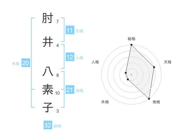 肘井 八素子さんの総格は32画の5点!