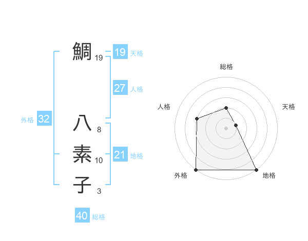 鯛 八素子さんを姓名の画数から五運を鑑定