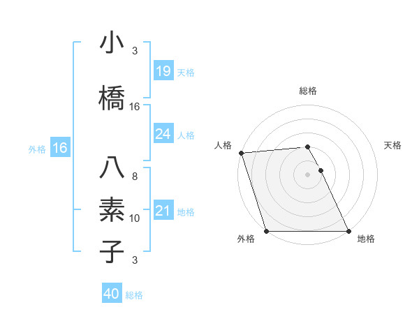 小橋 八素子さんを姓名の画数から五運を鑑定