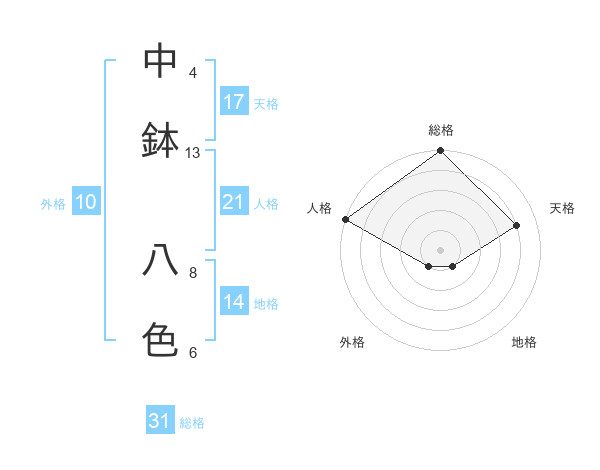中鉢 八色さんを姓名の画数から五運を鑑定