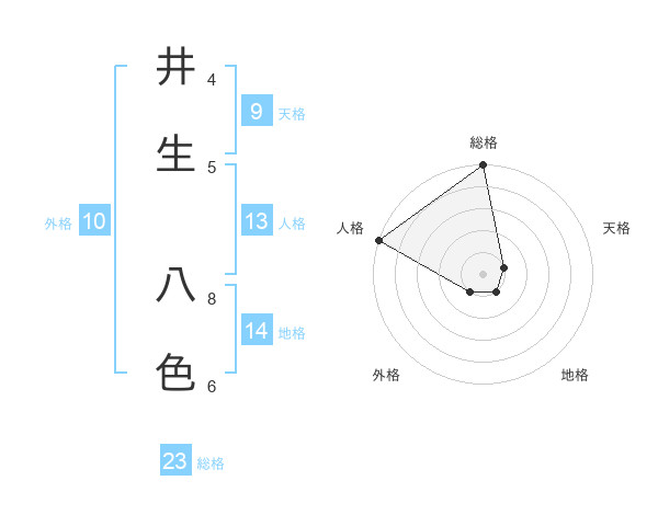 井生 八色さんの総格は23画の5点!