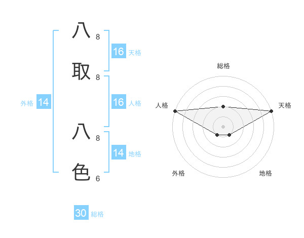 八取 八色さんの総格は30画の2点!