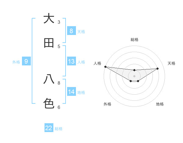 大田 八色さんの総格は22画の1点!